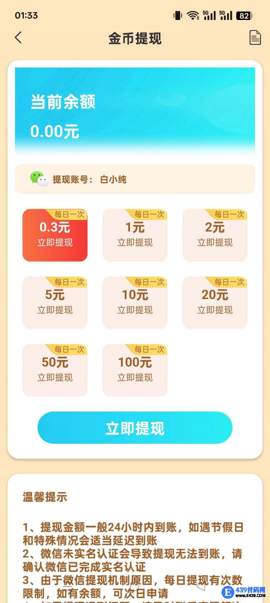 满1米提现,无门槛提现
