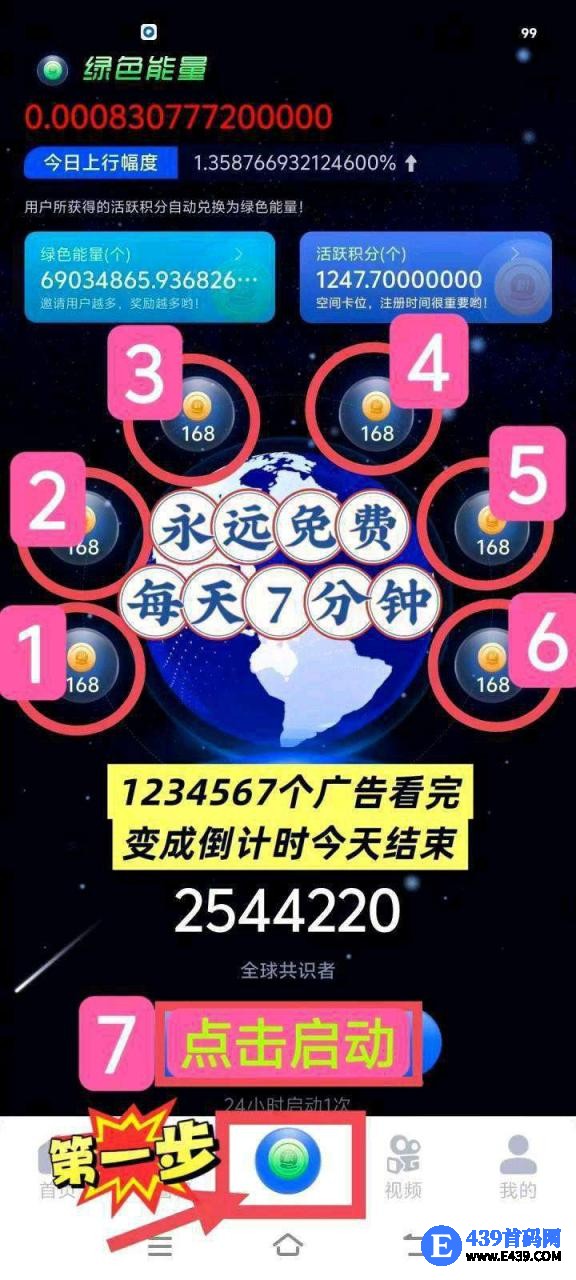 一个圈圈,零撸挂机三三滑落,保底收益高,每天7个广告,到账稳定。