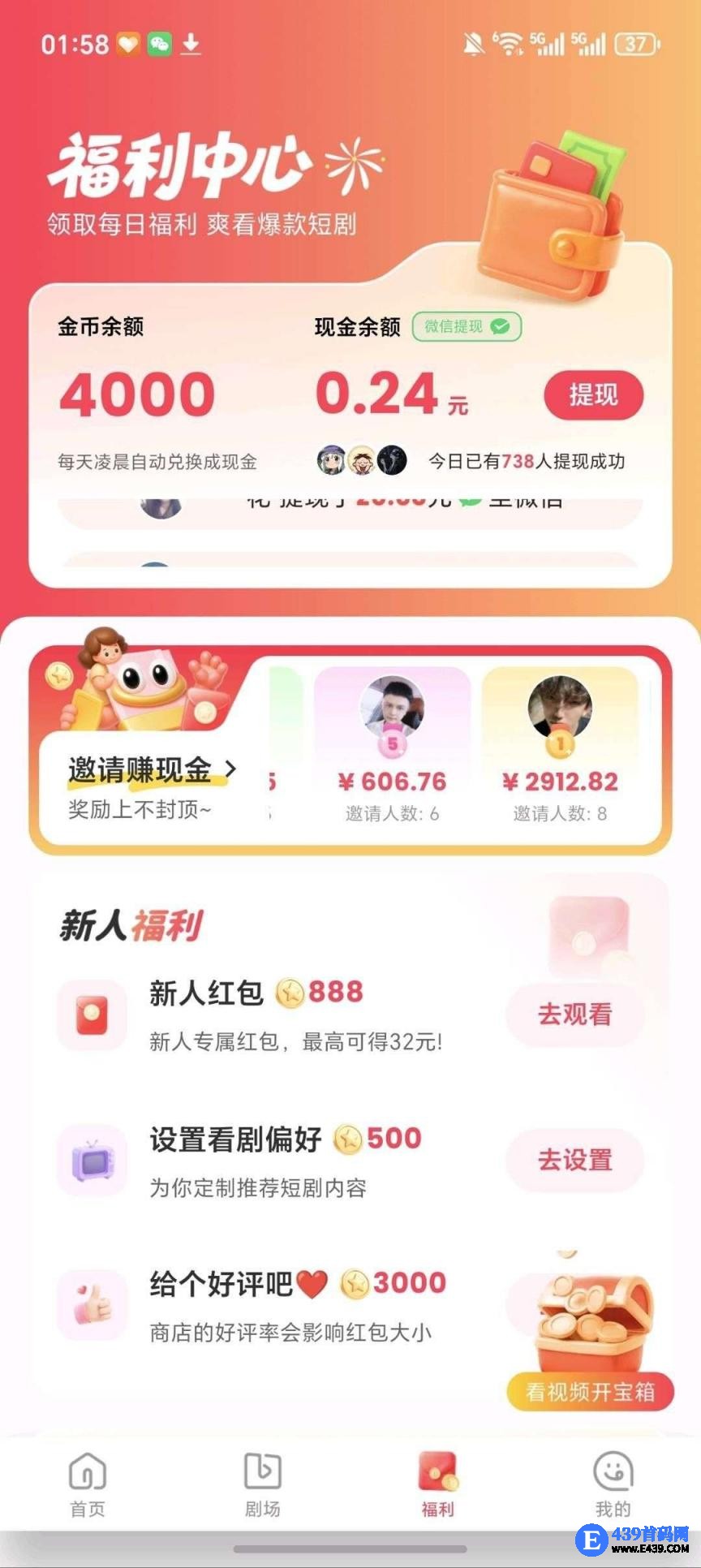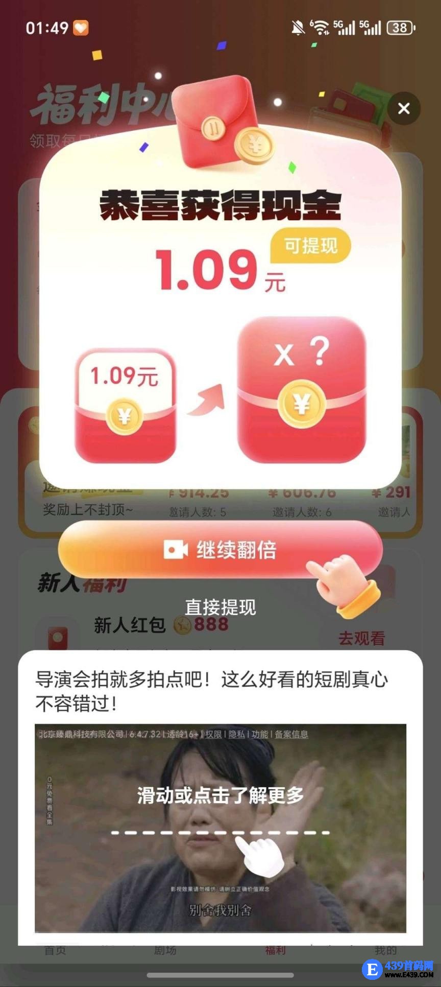正文 每日短剧,零撸短剧广告。保底收益高不养机,拉新奖励 用户4818 /2026-01-09 00:51 /73 浏览 01 09 每日短剧,零撸短剧广告。保底收益高不养机,拉新奖励,邀请日入百米短剧为主。多中任务奖励得金币我测试到了1元。提现看广告满0.3元提现。秒到账推广有收益,VX扫码下载。