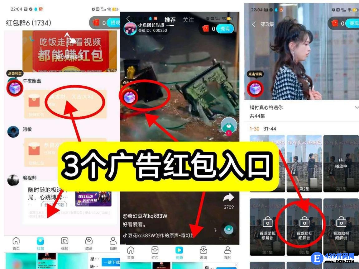 玩法:3个广告入口