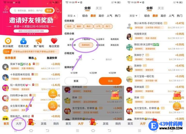 纯悬赏平台,每天更新数千个兼职任务,很多高额任务,自己选择去做,每个任务金额0.3-100。每天空闲时间赚个30+没问题,还可收徒,每收一个徒弟也就是直推,可得现金1-9.9块现金奖励,并且每个月还有收徒奖励,最高18888.徒弟收徒也有奖励。具体下载软件去看详情。任务简单好做