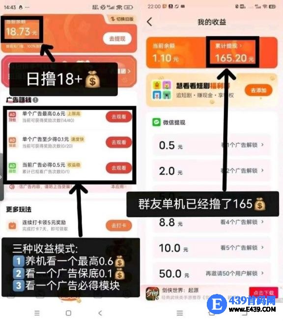 慧看看,零撸广告赚,不养机保底收益高,邀请日入百米,团队模式,一天轻松几十块,
