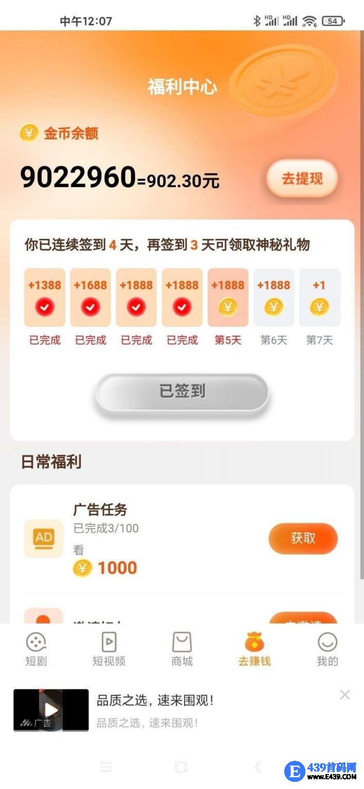 同邦趣,零撸广告赚,保底收益高,不养机,放水中,拉新奖励。邀请日入百米,免费短剧,
