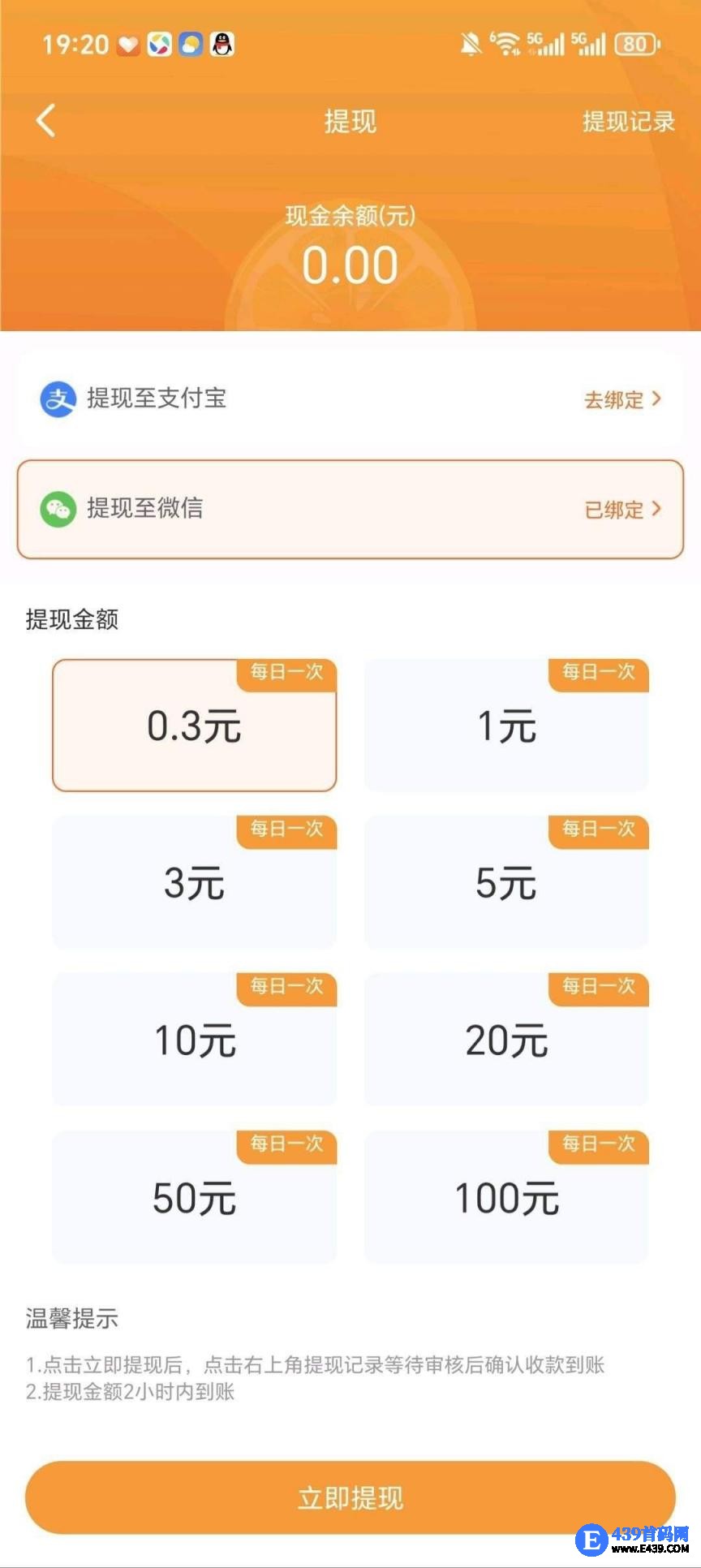 满1元起提,