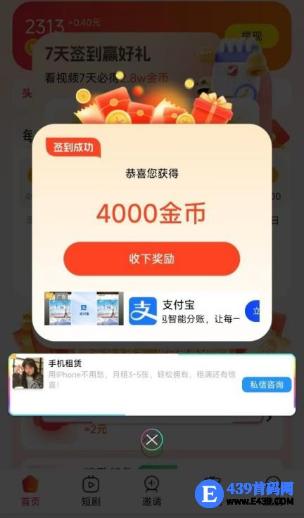 【仟贝短剧】广告赚,零撸保底收益高,1w金=1米。秒提V
