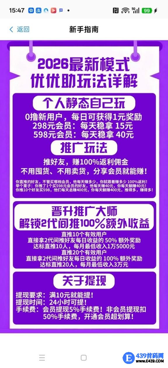 优优助玩,零撸保底收益高,看客帮模式,邀请日入百米,团队更多奖励,