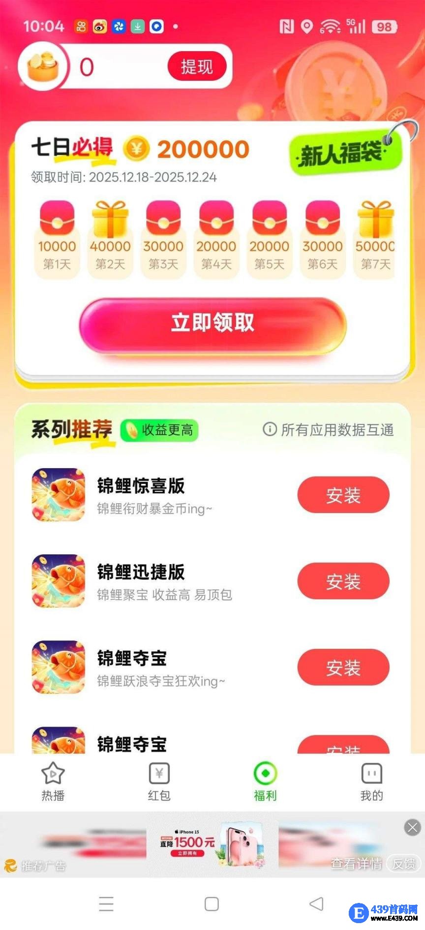 ❷福利新人签到直接送现金