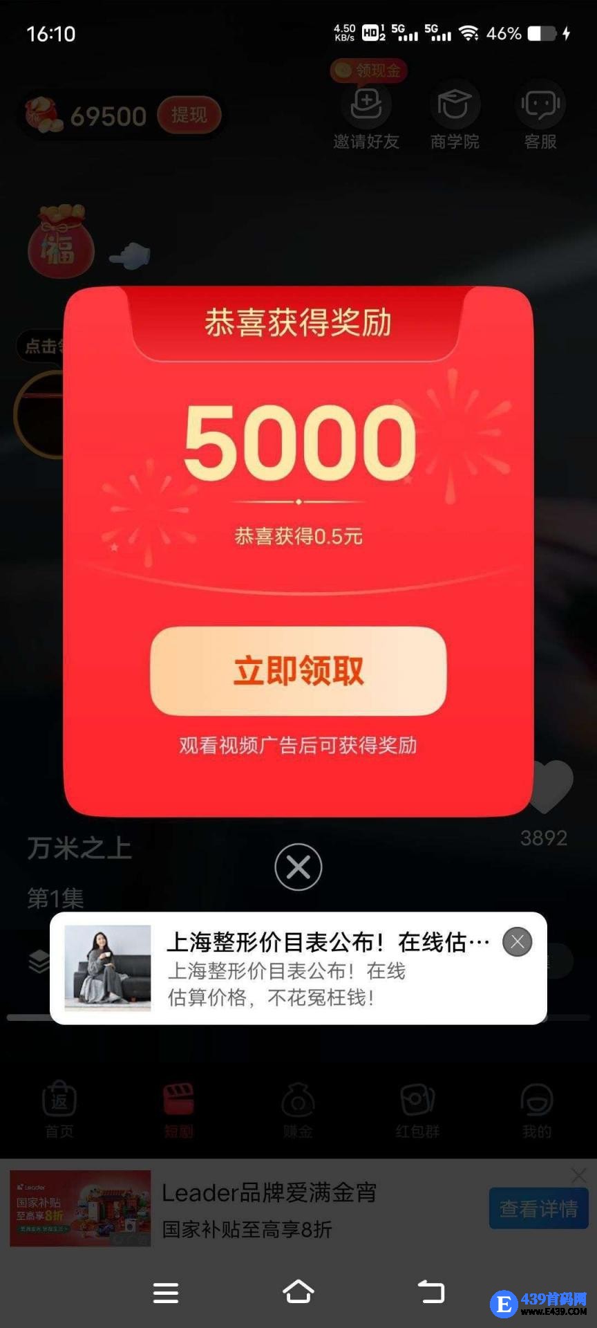 立即登录易淘生活!零撸纯撸广告!保底收益高放水中,邀请日入百米,不养机,团队模式,看一个广告最高0.5亓!0.3起提!秒到,团队收益,新出平台水大